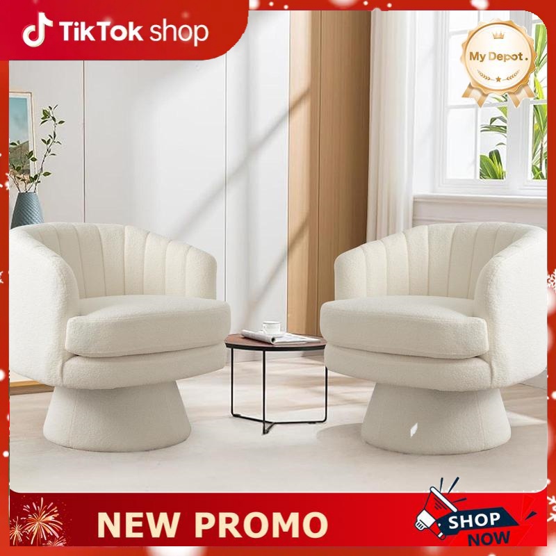 🔥 Ebello Swivel Accent Chair – Modern Cozy Lambswool 360° Swivel Barrel Chair